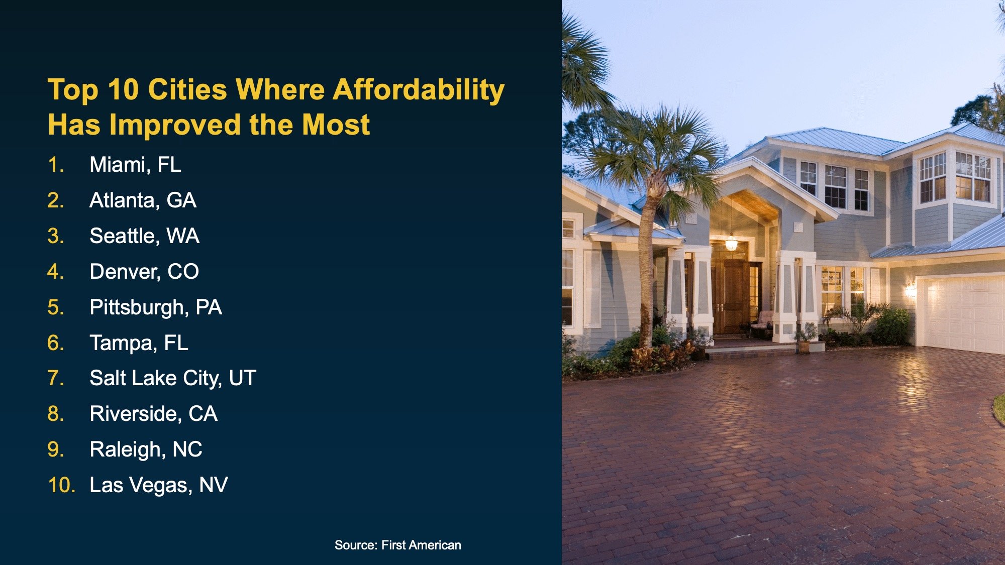 Sure, individual states, cities, and even neighborhoods are going to vary – sometimes by a lot. But overall, more buyers are able to buy again. And in 48 of the top 50 metros, affordability has improved over the past year.